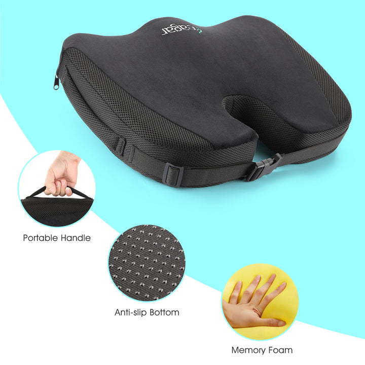 Feagar Sitzkissen, Memory Schaum Sitzkissen Autositz Kissen für Bürostuhl, Auto und Rollstuhl - Mit Ersatzbezug